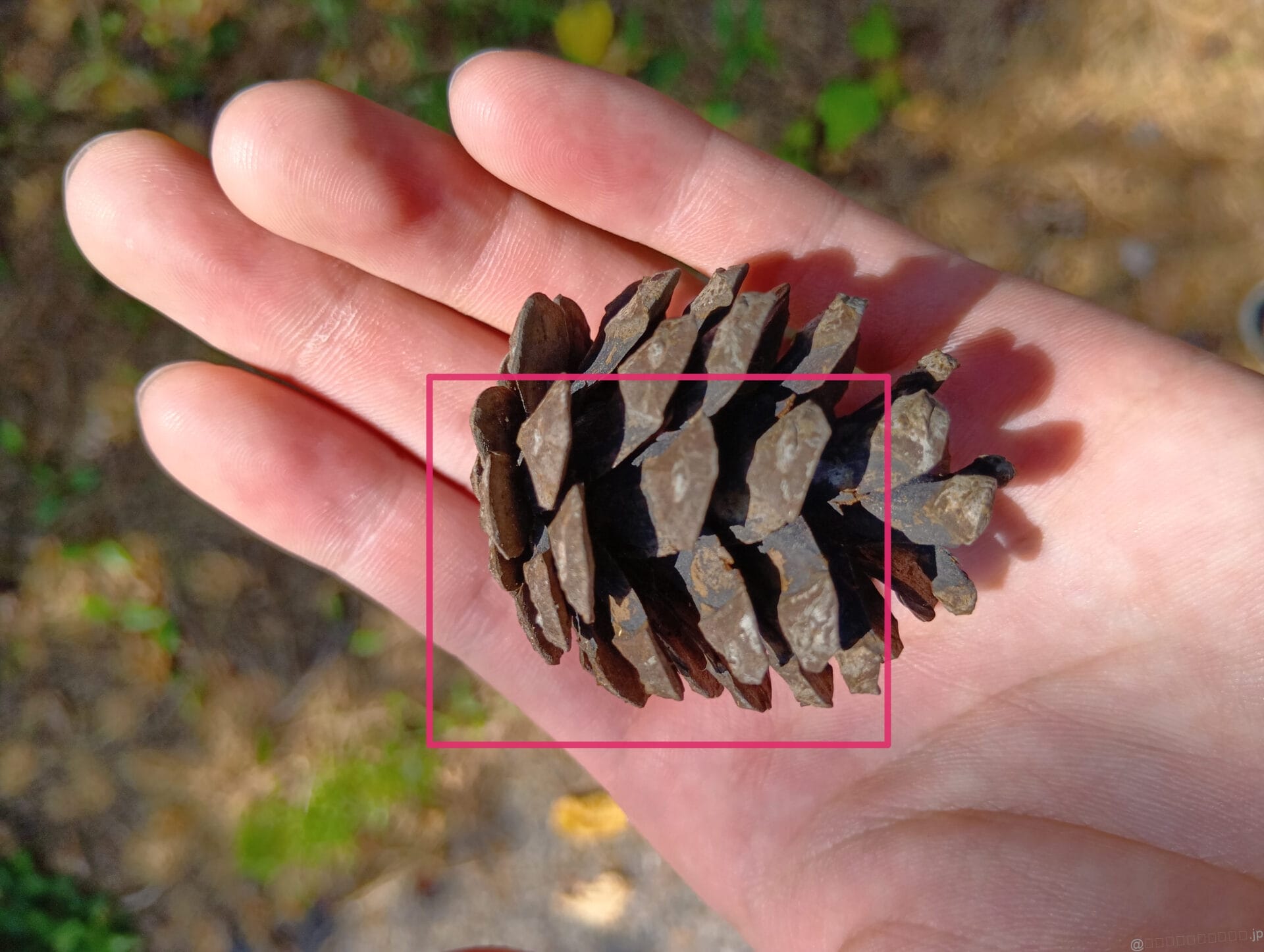 AQUOS wish5 レビュー 手のひらの松ぼっくりを撮影した一枚