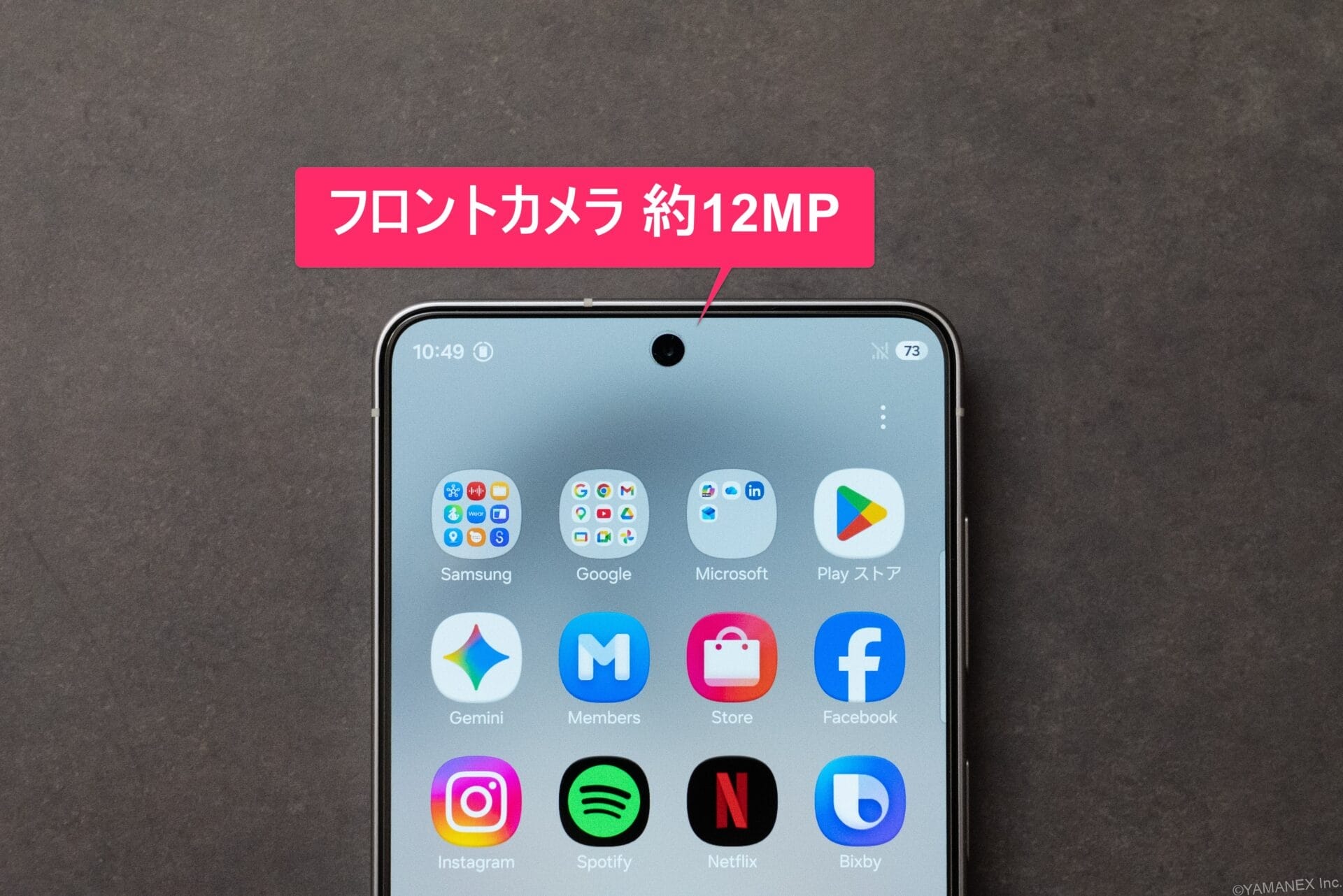 フロントカメラ約12MP(F値/2.2)