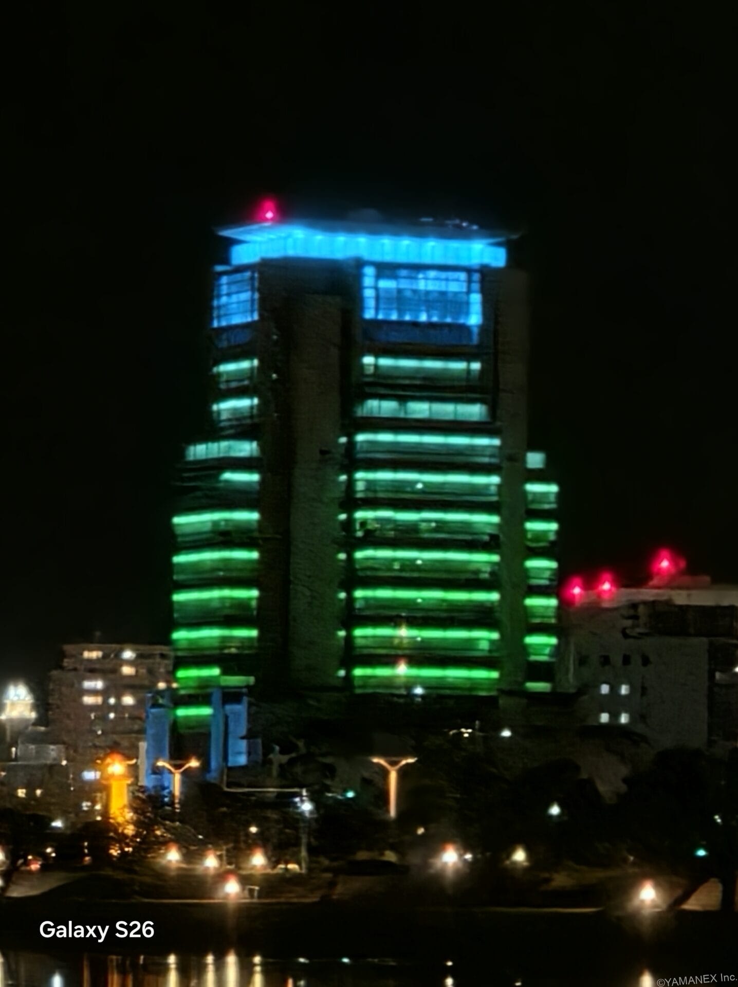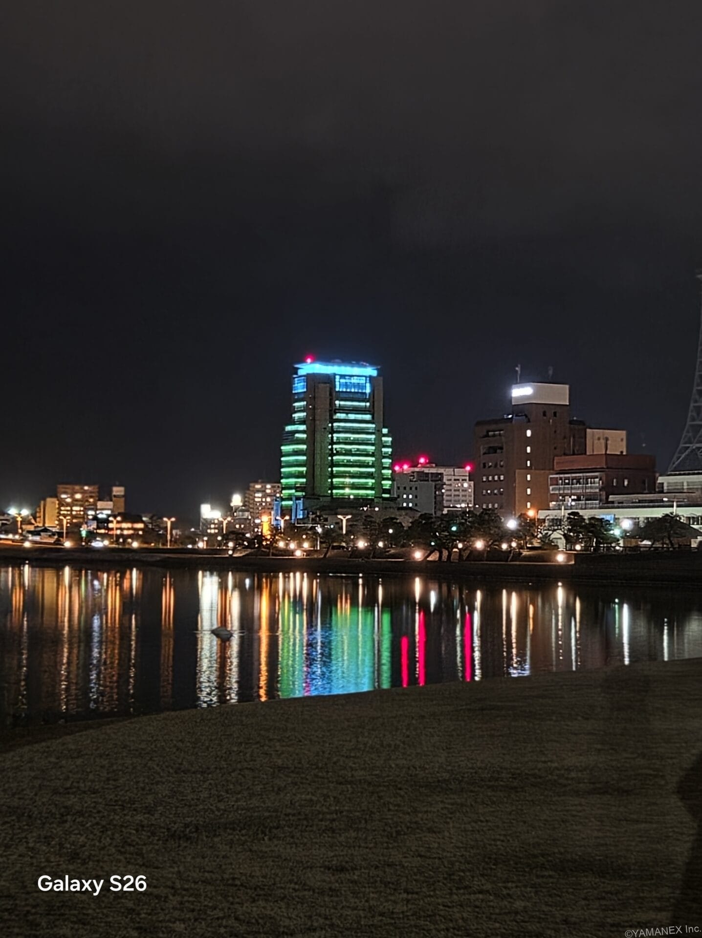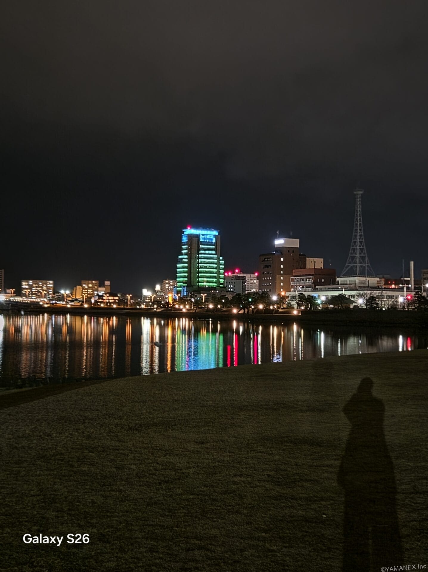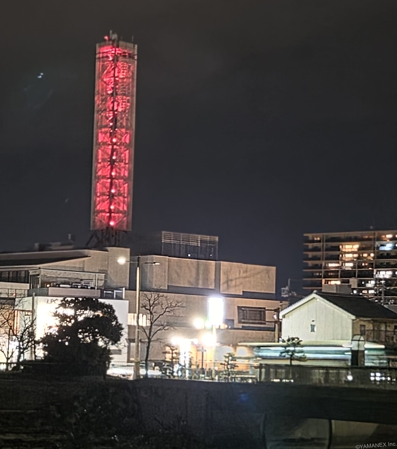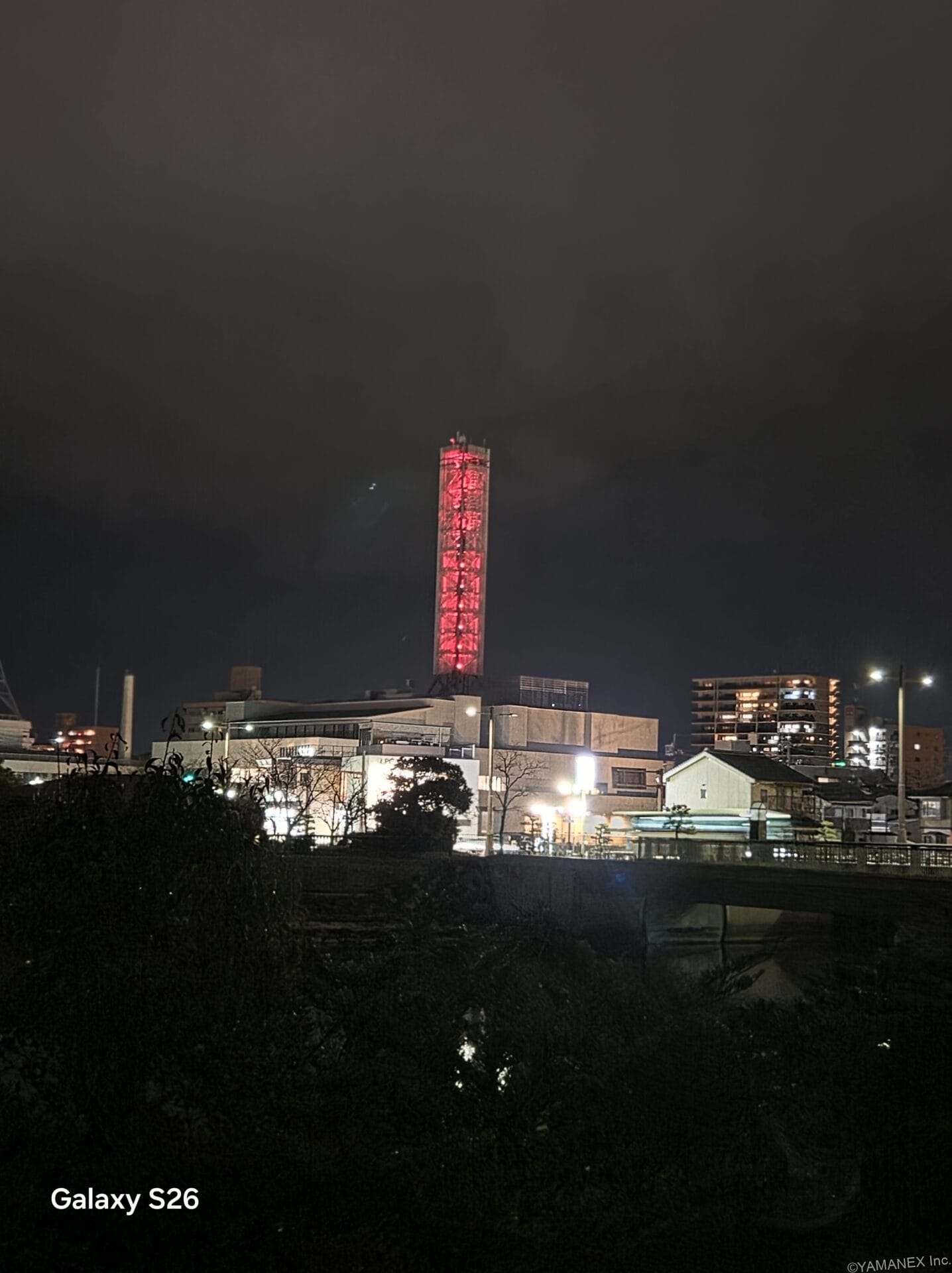 Galaxy S26 カメラ 赤い鉄塔を夜間撮影