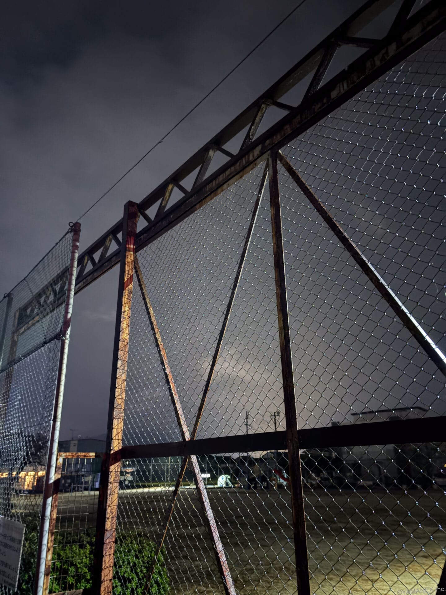 Galaxy S26 カメラ フェンスの金網を夜間撮影