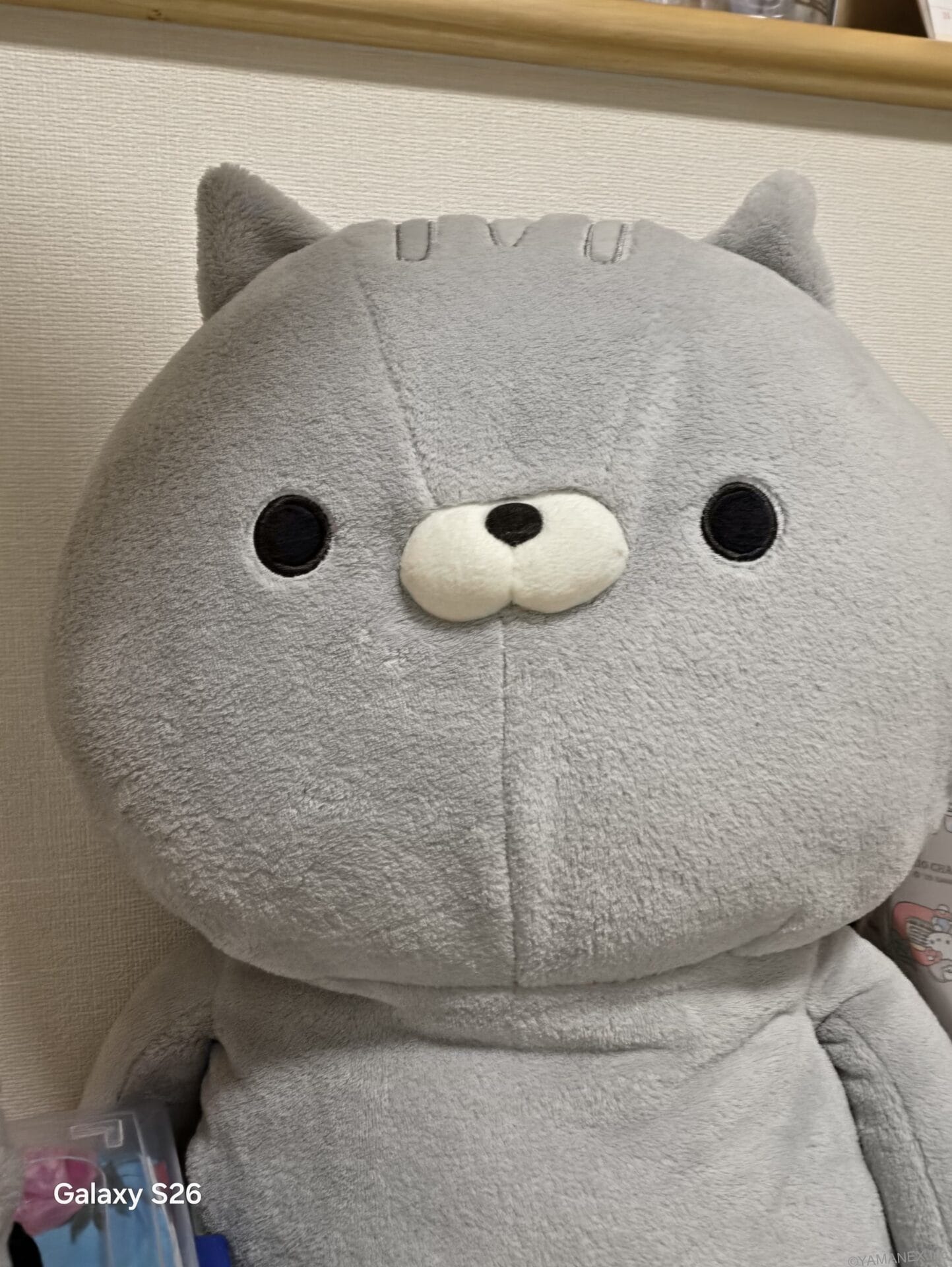 Galaxy S26のカメラは、明るく鮮明な自撮り写真が撮れます。以下の作例では、ぬいぐるみのふさふさとした毛並みがしっかり再現されているほか、背景の壁の凹凸までくっきりと捉えています。