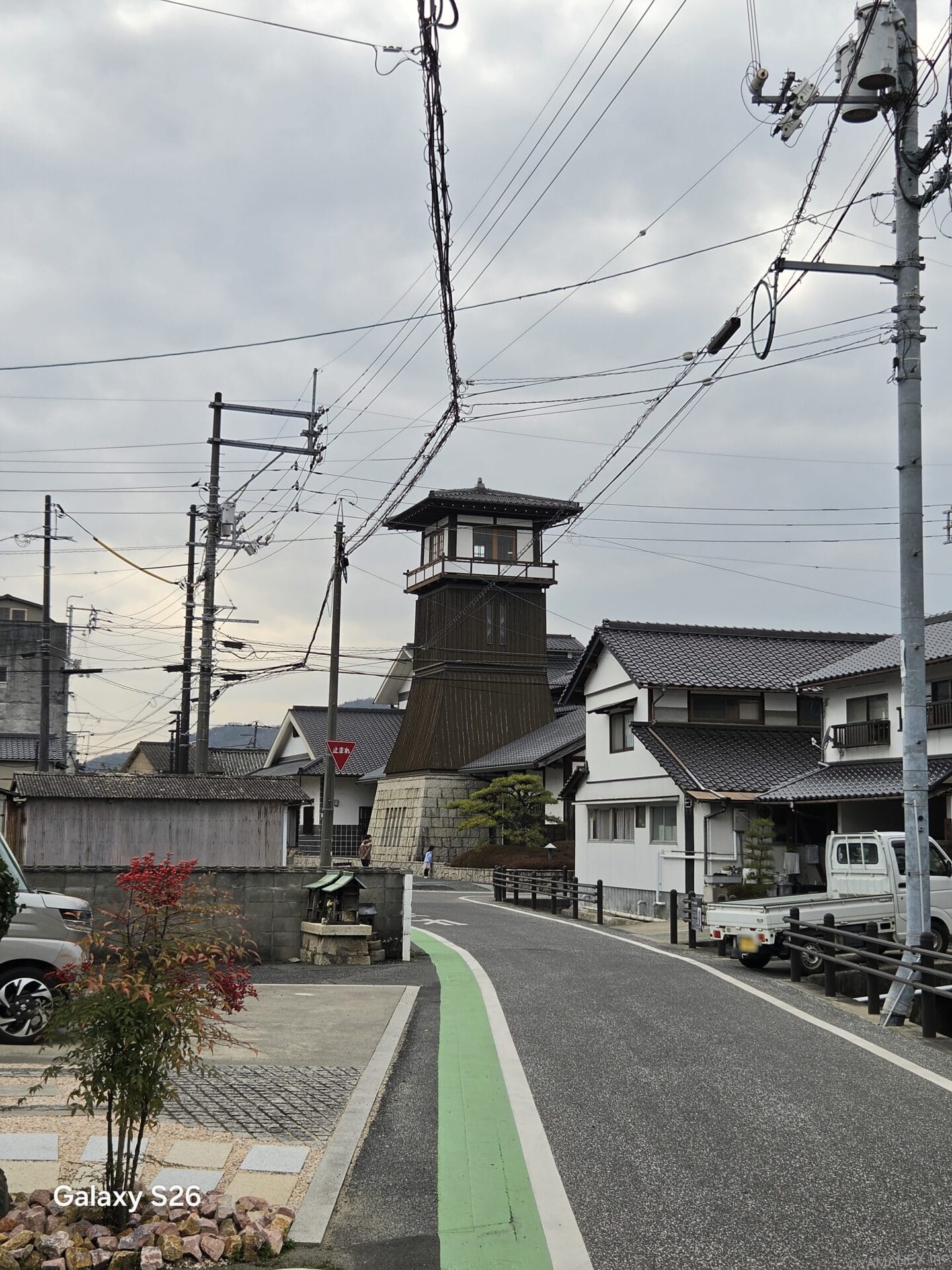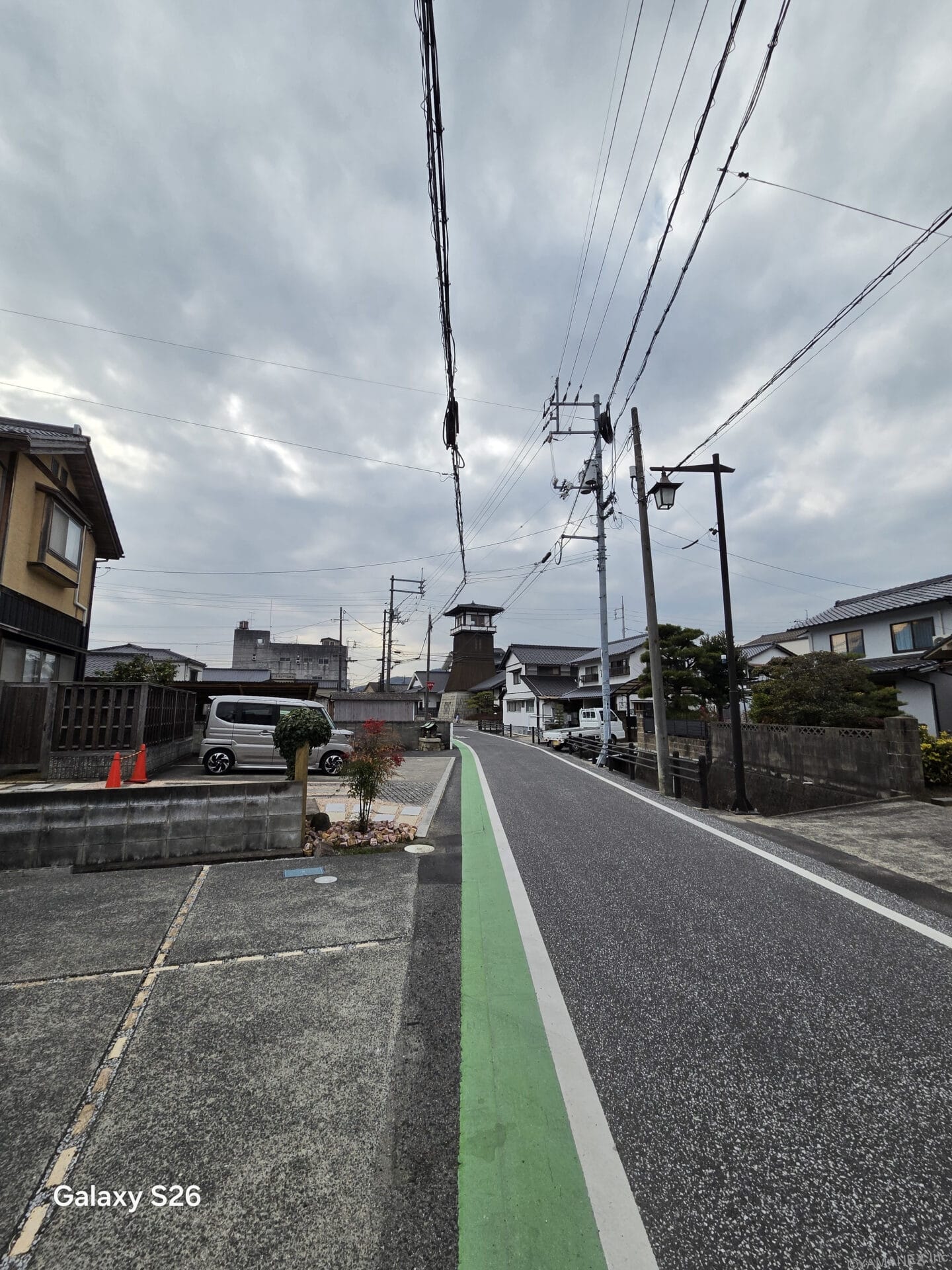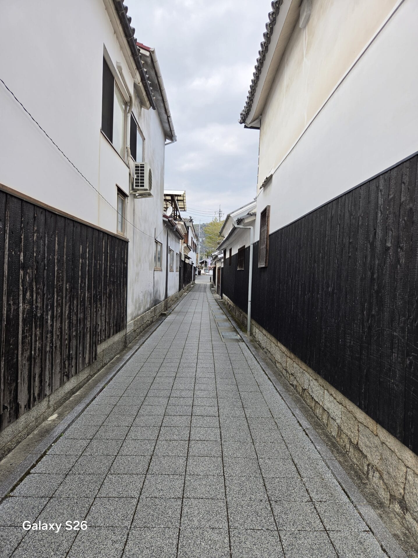 Galaxy S26 カメラ 古い建物が立ち並ぶ小道を撮影