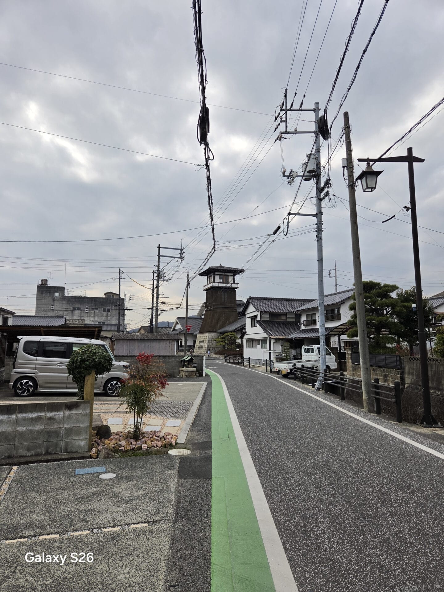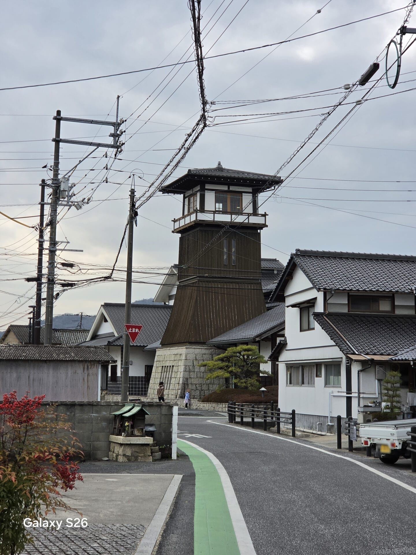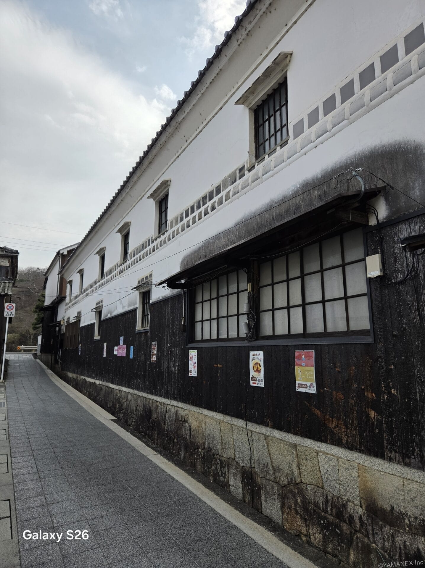 Galaxy S26 カメラ 古い建物が立ち並ぶ小道を撮影