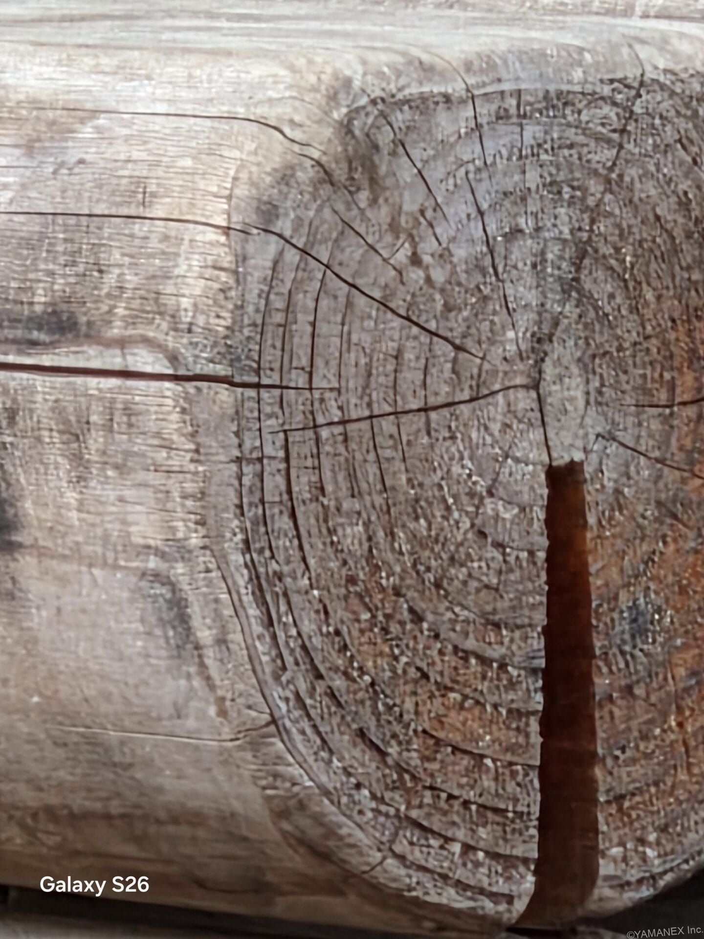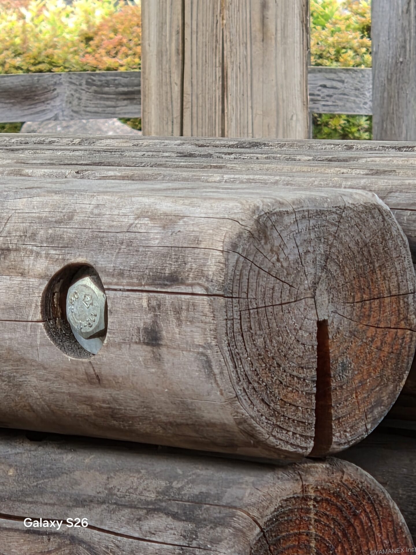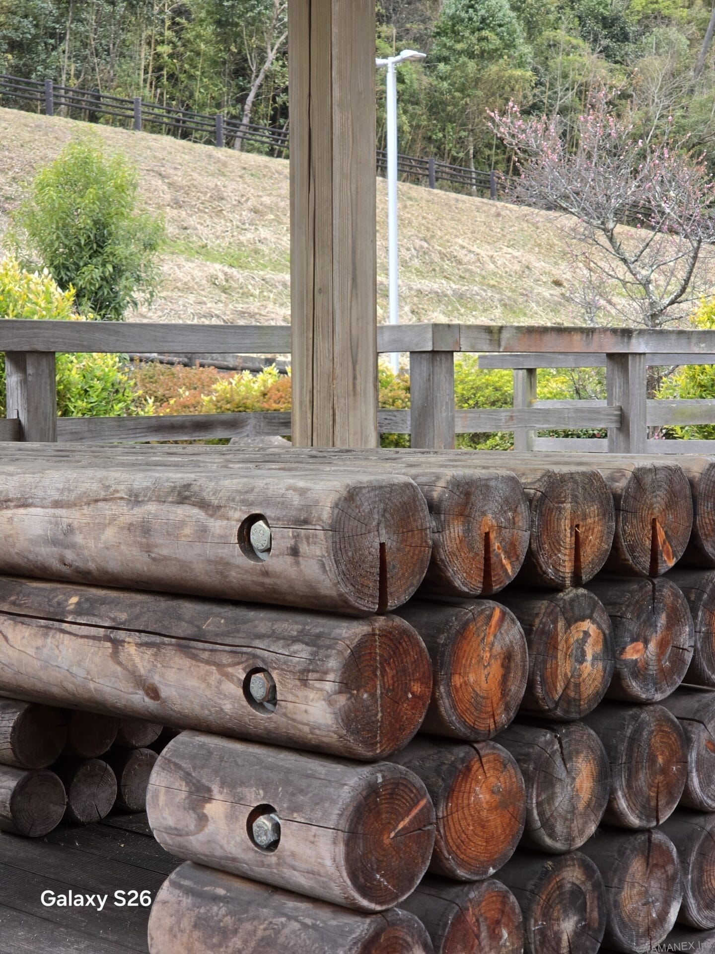 Galaxy S26 カメラ 丸太が積み重なった様子を撮影