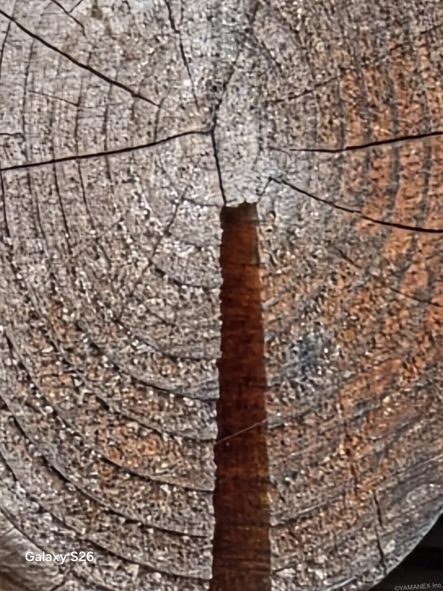 以下は丸太をズーム撮影した作例です。全体的に明るく撮影できており、暗部のノイズも抑えられています。丸太の年輪の細部までしっかり描写できています。