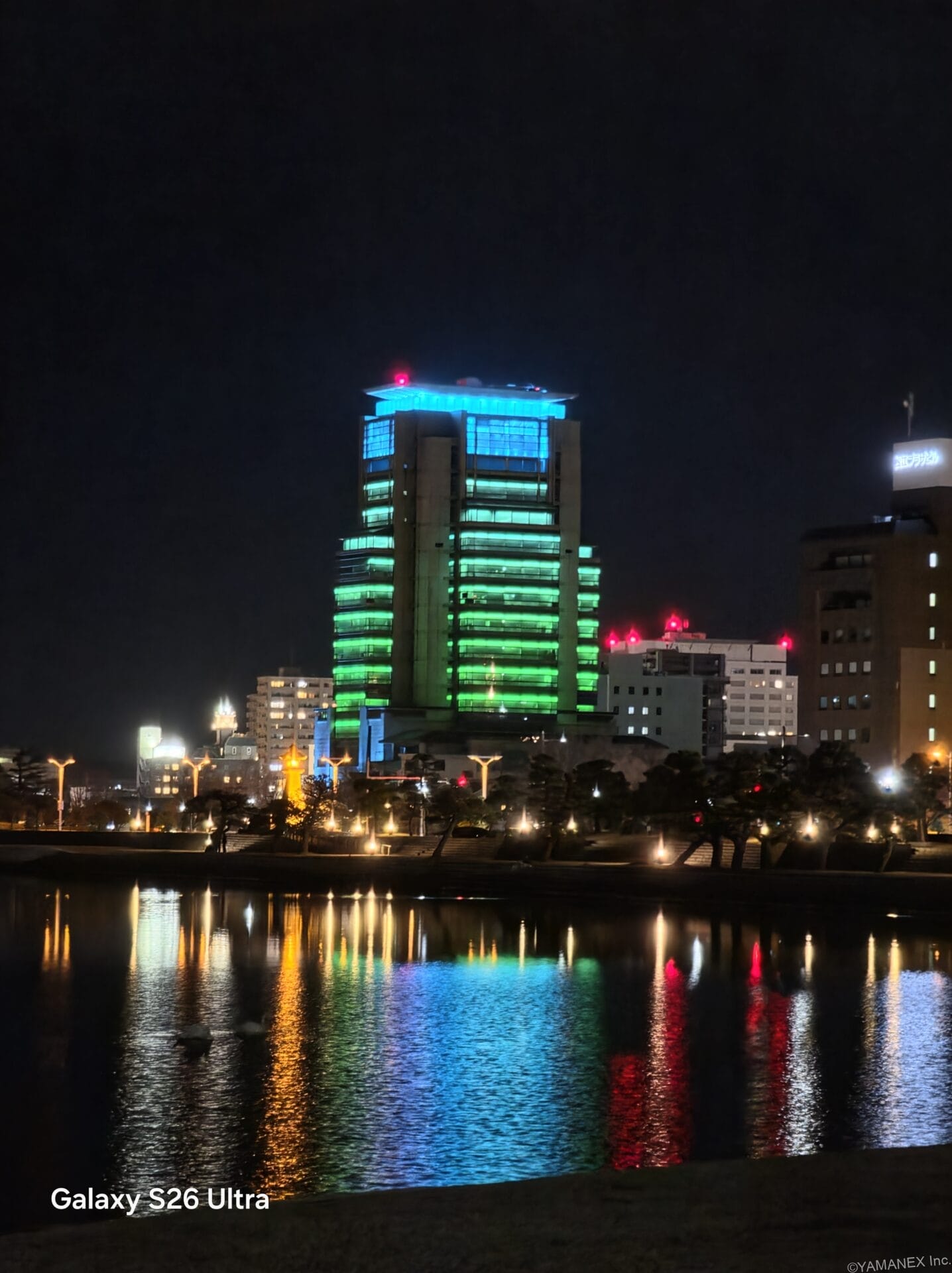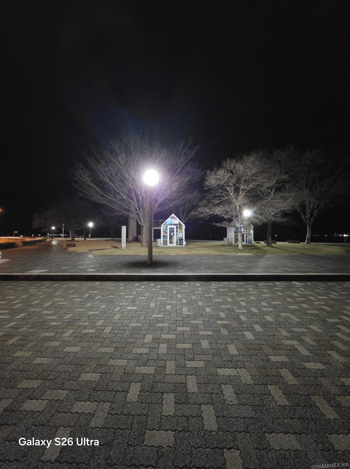 以下は、前モデルとの比較作例です。見比べると、Galaxy S26 Ultraは街灯の光の拡散が抑えられています。補正感も控えめで、より自然な雰囲気に仕上がっています。