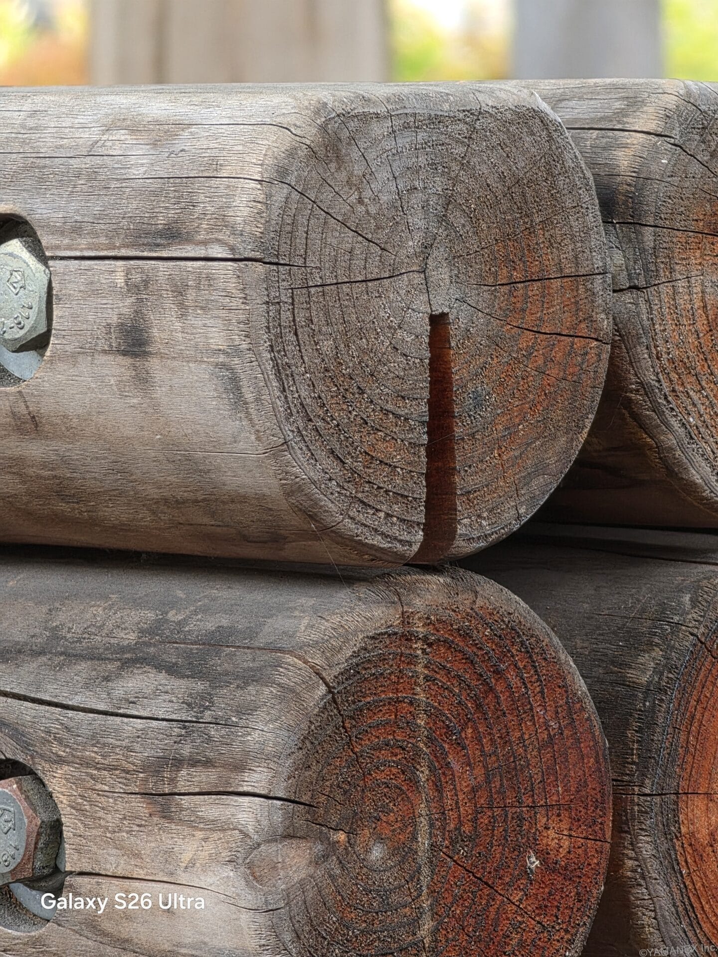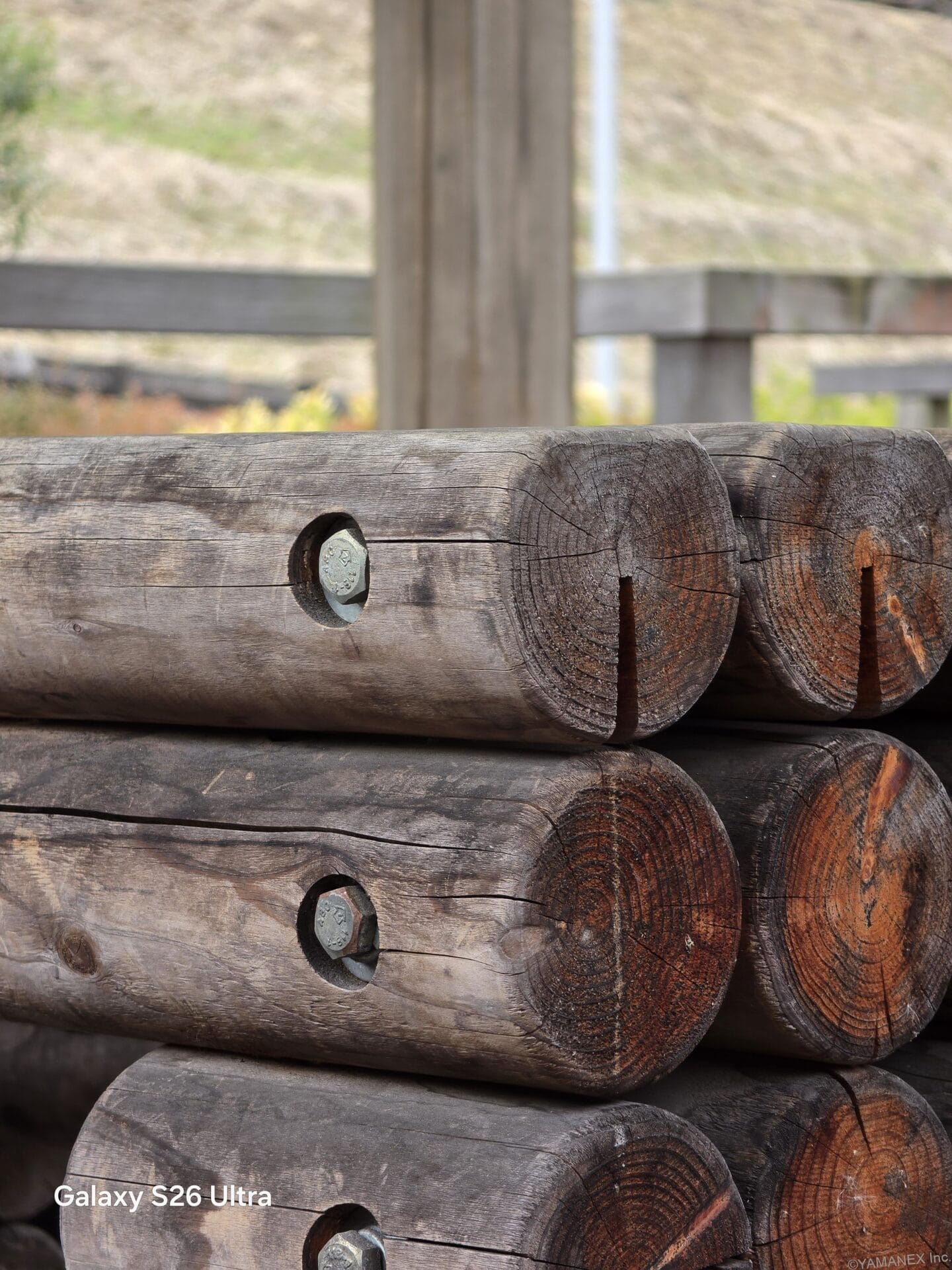 以下は、0.6~100倍ズームで撮影した作例です。10倍ズームでも画質の劣化が抑えられ、背景のぼかしもバランスよく表現できています。被写体の丸太の年輪も、細部までしっかりと捉えています。