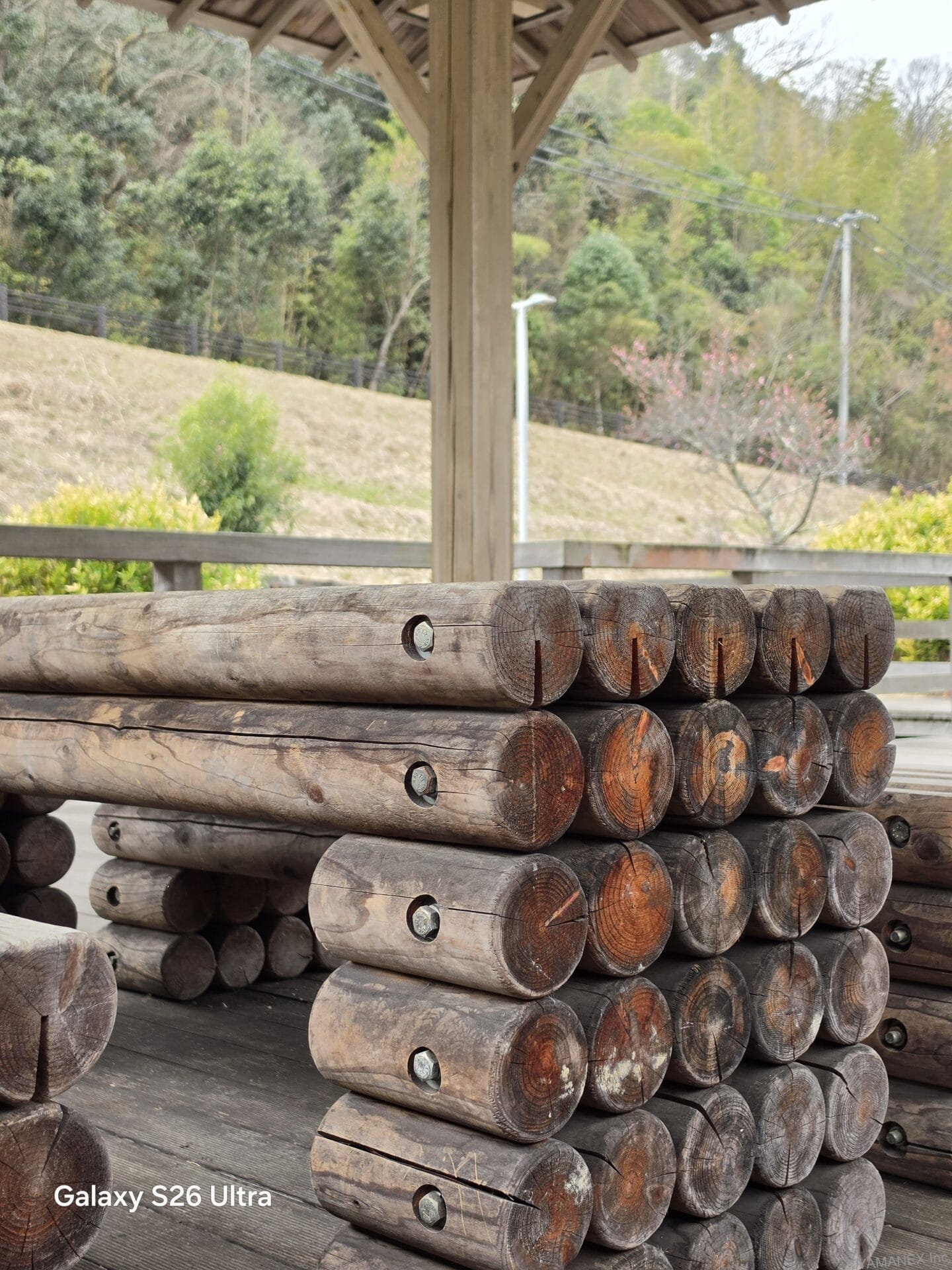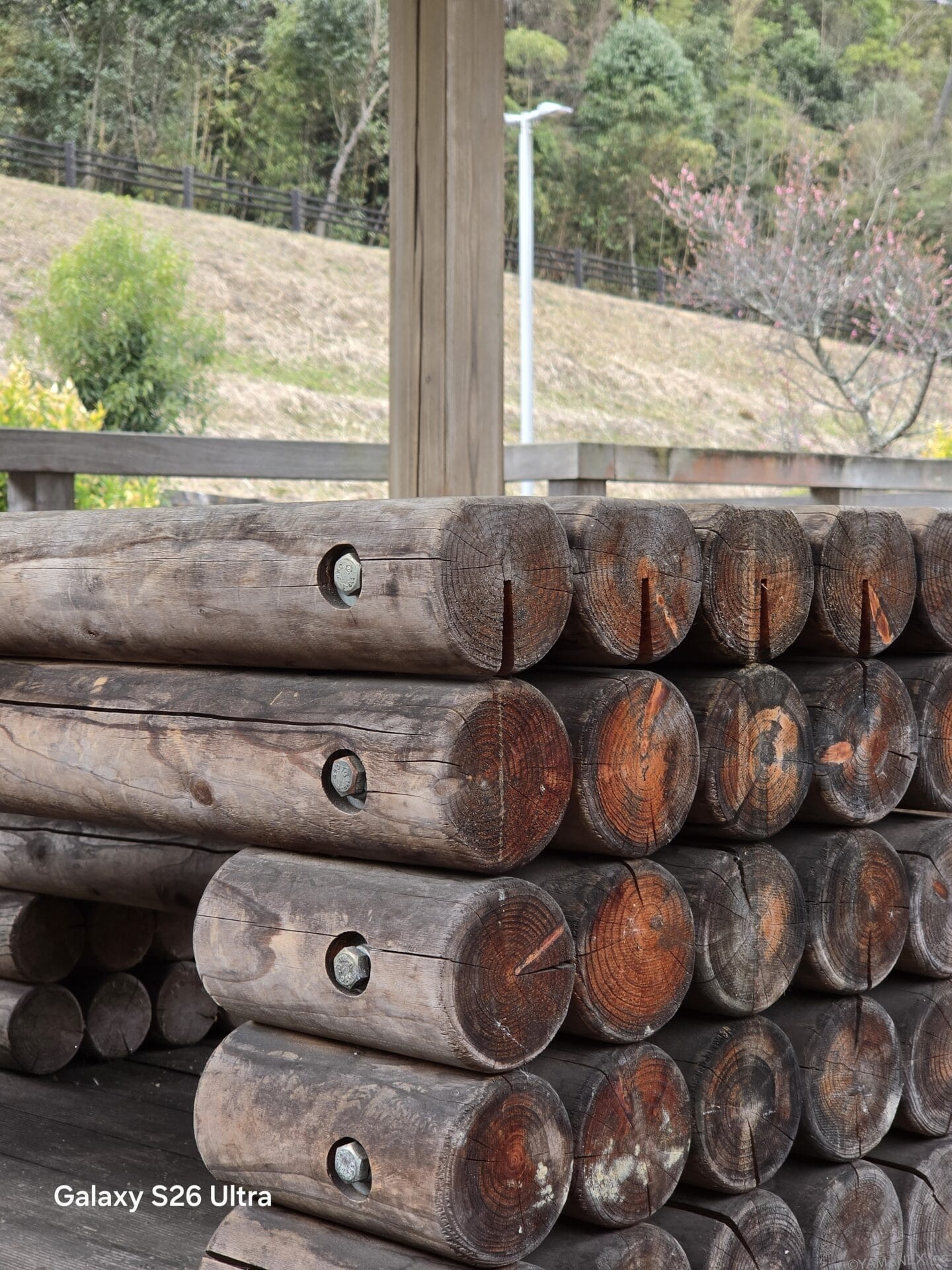 iPhone17 Proと比較すると、Galaxy S26 Ultraの方がワイドな風景でも歪みが少なく自然に収まり、草木の細かな葉までしっかり再現できています。