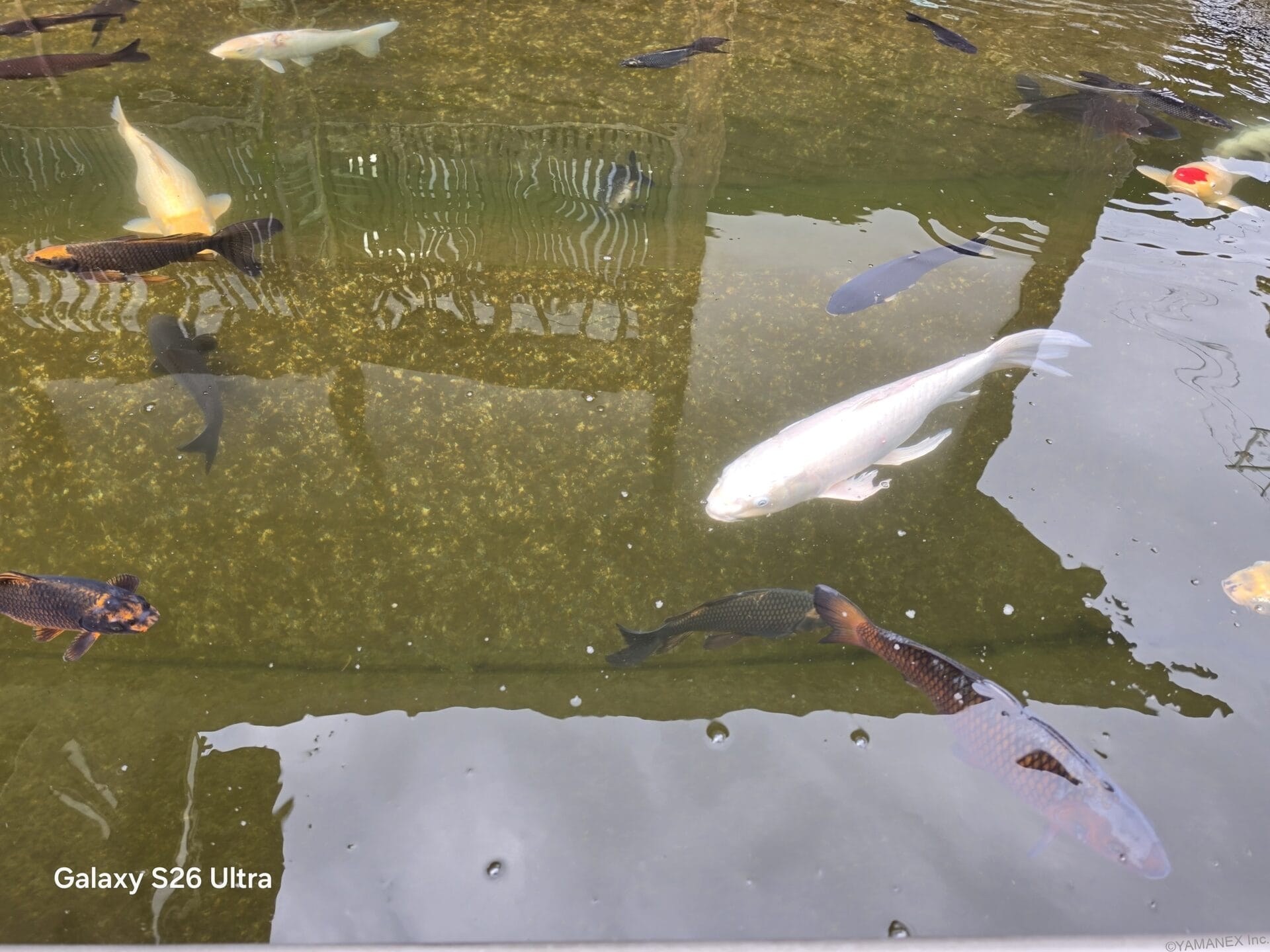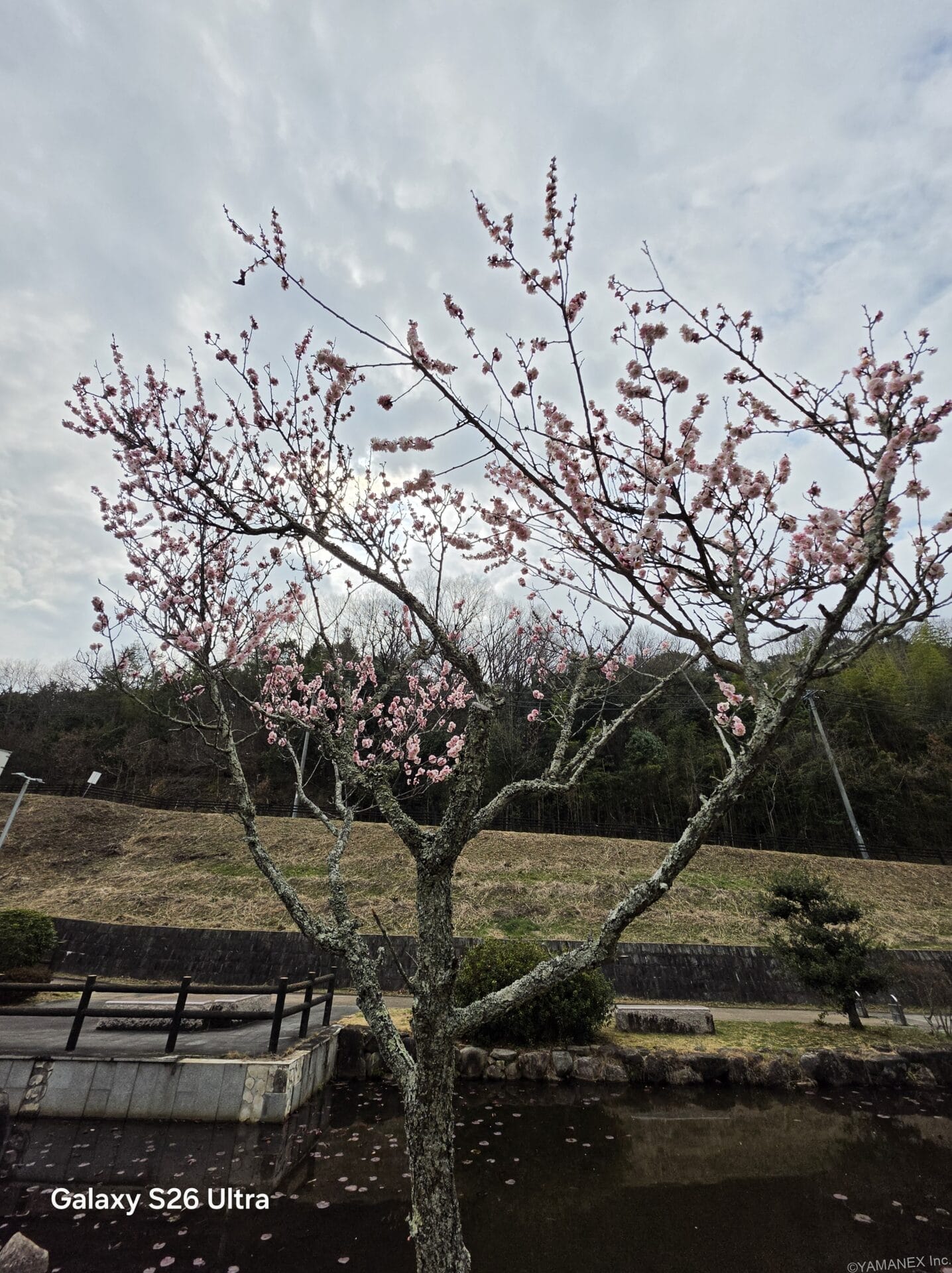 Galaxy S26 Ultraのカメラは、風景撮影が得意です。作例1と2では曇天の低照度シーンでも明るさを保ち、草や背景の山など暗くなりがちな部分の黒つぶれを抑えています。作例3では池の中の鯉を明るく映し出し、幻想的な1枚に仕上がっています。