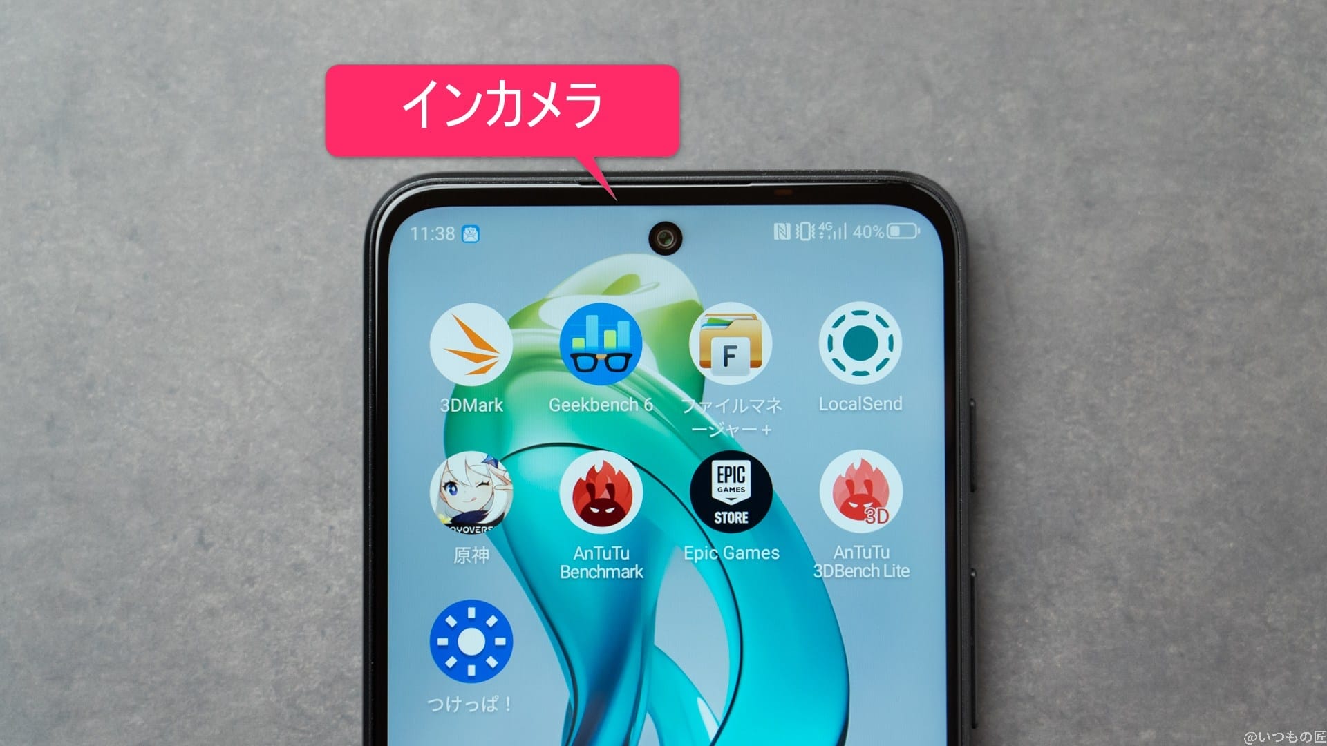 インカメラは1,600万画素で、エントリーモデルとしては高画素です。さらに、ディスプレイ表示を邪魔しないパンチホール型を採用しています。