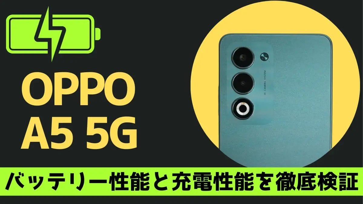 今回は、OPPO A5 5Gのバッテリー稼働時間と充電性能について、筆者が実機で検証した結果をもとに評価しました。
