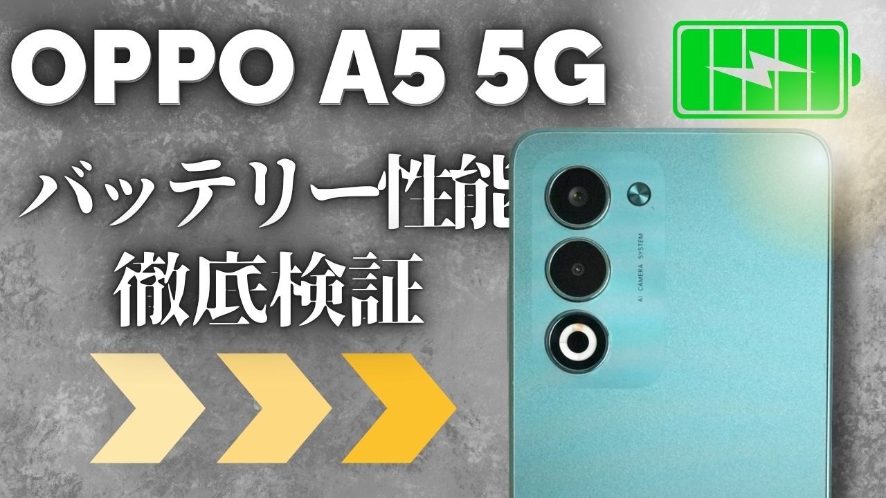 【神コスパ】OPPO A5 5Gバッテリー性能、徹底調査してみた🔥 OPPO A5 5Gのバッテリー性能を徹底検証!バッテリーの持続時間から様々な充電器での充電時間まで、調べ尽くしました。[検証したスマートフォン]OPPO A5 5G [実施条件1:バ...
